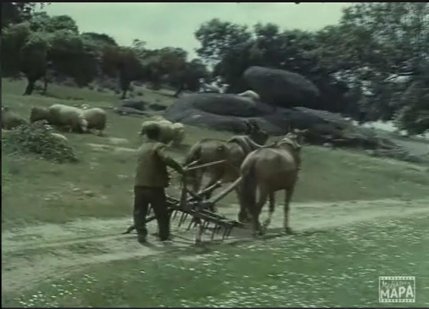 Las tierras eran duras de labrar, con grandes canchos, extremeño con la yunta y el rastrillo.