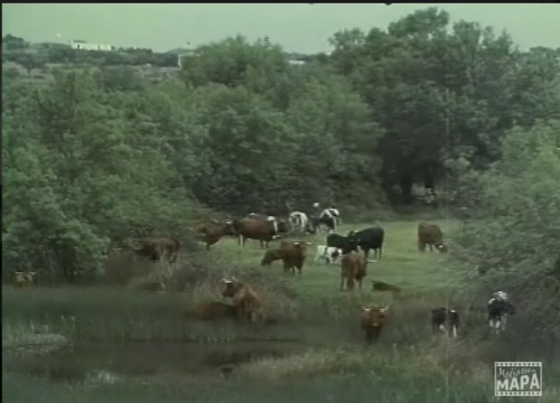 Las vacas pastaban en las dehesas al lado de las riberas.