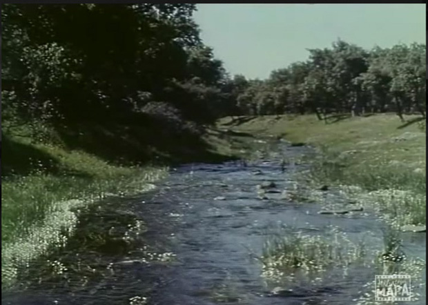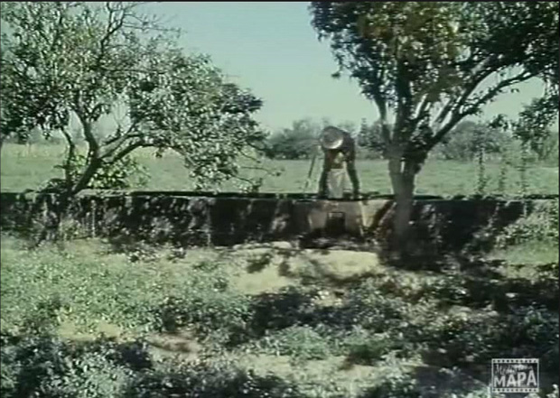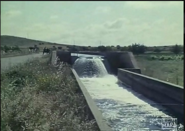 Las acequias, pues estas regaban las parcelas (Colono levantando la compuerta)