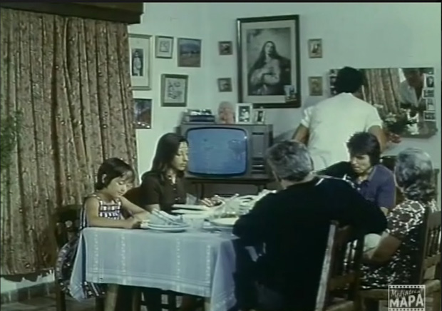 Una casa, de estos pueblos, con su familia dentro, ya empezaban a verse las primeras televisiones.