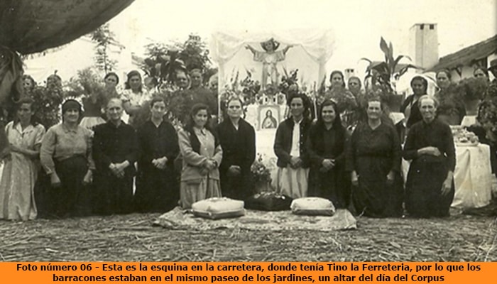 Y también en la ronda norte entre las casas de colonos y los barracones, un altar, con todas las vecinas de aquellos tiempos. Si os paráis a contemplar dicha foto conoceréis a casi todas las mujeres que están en la misma.