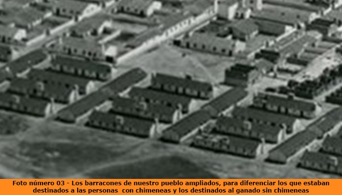 Como podemos apreciar en la fotografía de más abajo número 05, los tejados de los barracones eran de cartón piedra o cartón de brea, por lo que el color de los techos eran negros.
