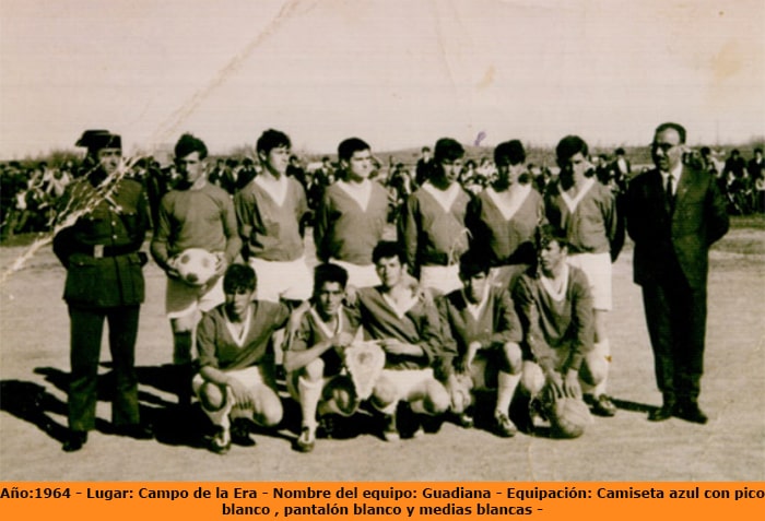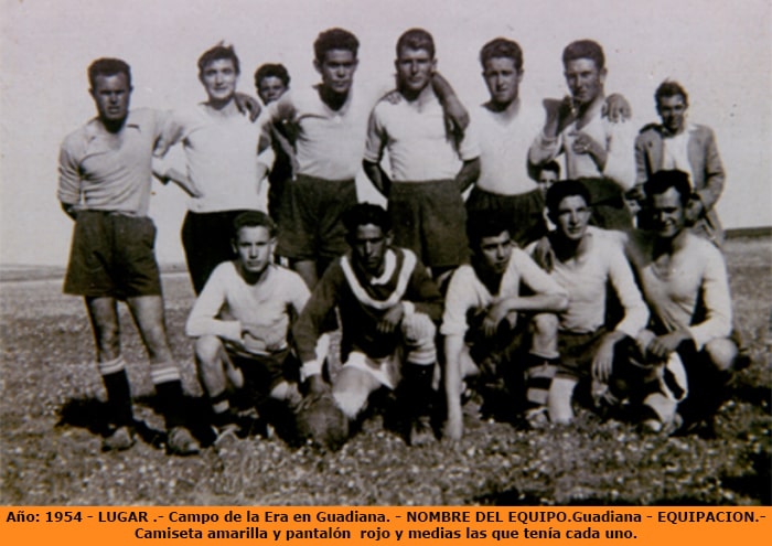Según José Lebrato Diez (fallecido) cuenta en el libro sobre el futbol en Guadiana que escribieron, Miguel Vinagre y Manolo Pérez, este fue uno de los primeros equipos formado en nuestro pueblo, era el año 1954  esta era la alineación, de derecha a izquierda