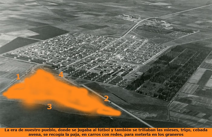 Si miráis esta fotografía, estaba situada la era (parte pintada) entre el canalillo nº 1, la carretera del cementerio nº 2, el canal del medio nº 3 y los barracones nº 4.