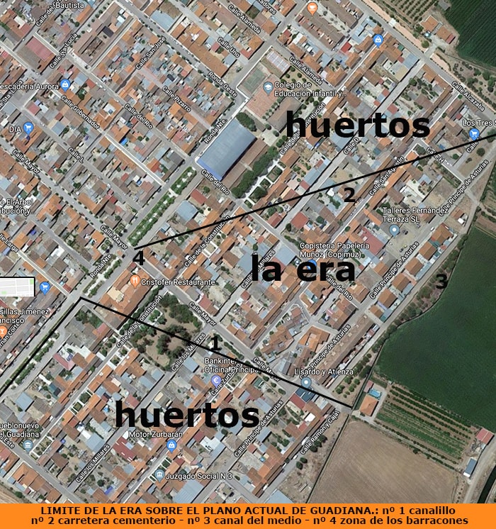 En primer lugar al igual que hice en la primera parte sobre la era, os voy a poner estas dos fotos una los límites de la era en los primeros años del pueblo.