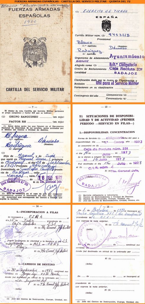 Durante todo el año del 73, junto a otros quintos que habían nacido en sus respectivos pueblos y habían venido más tarde a Guadiana, se marcharon al campamento que les tocara a cada uno, y después fueron a sus respectivos cuarteles.