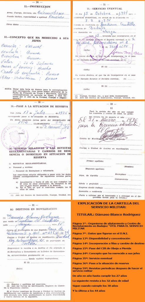 Al terminar el servicio militar después de varios meses en el CIR y cuarteles, las Fuerzas Armadas Españolas les entregaban la blanca, que era la Cartilla del Servicio Militar, en la que constaban todas las fechas desde el inicio en la Caja de Reclutas, la incorporación a filas, lugares donde habían estado destinados fecha de la licencia y las revistas que debía pasar el soldado una vez terminada su vida militar.