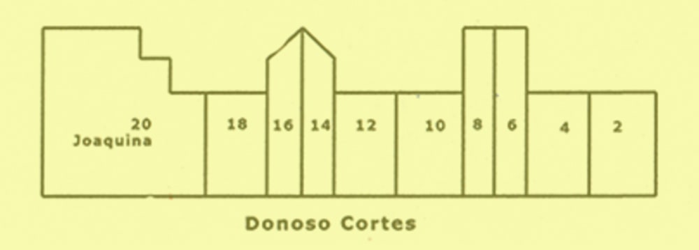 Plano de la situación de las casas de la calle Donoso Cortés del lado de los números pares
