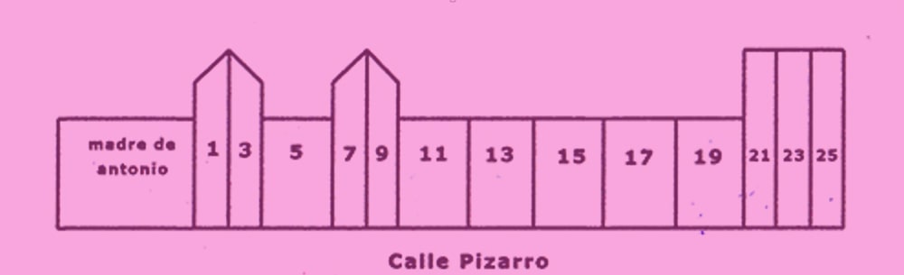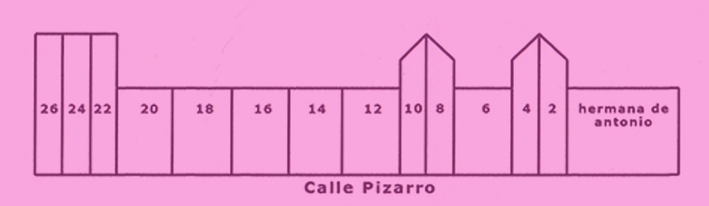 Plano de la situación de las casas de la calle Pizarro del lado de los números pares