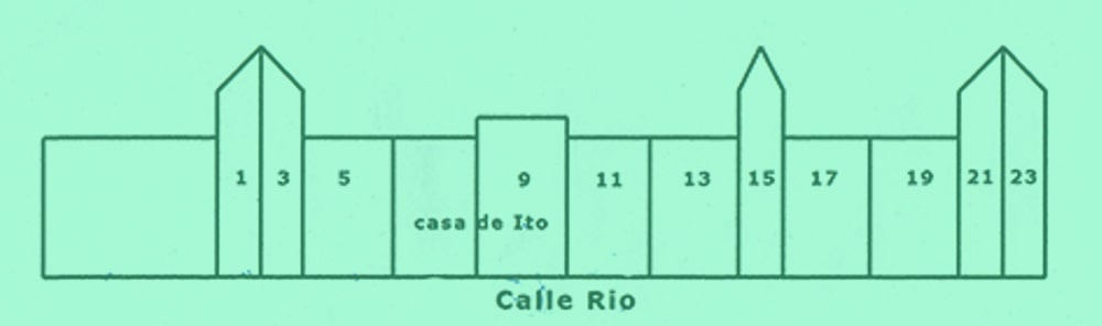 Plano de la situación de las casas de la calle Rio del lado de los números impares