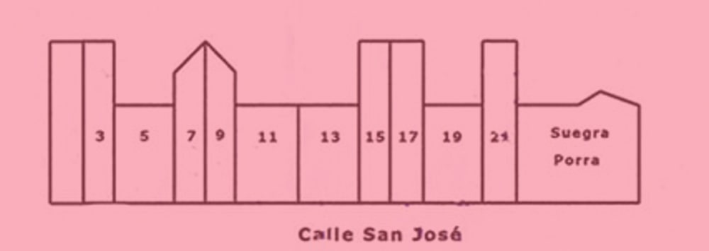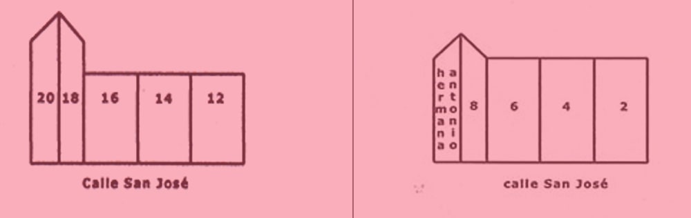 Plano de la situación de las casas de la calle San José del lado de los números impares