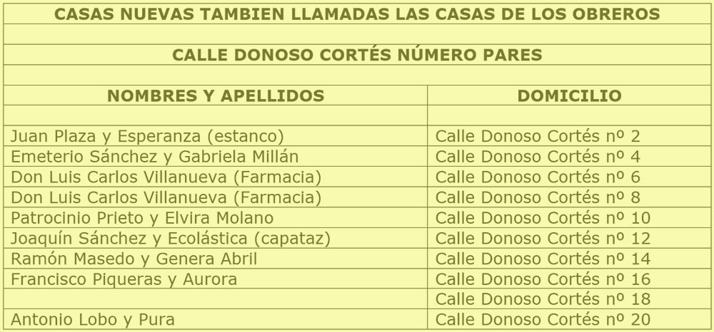 Matrimonios de la calle Donoso Cortés del lado de los número pares
