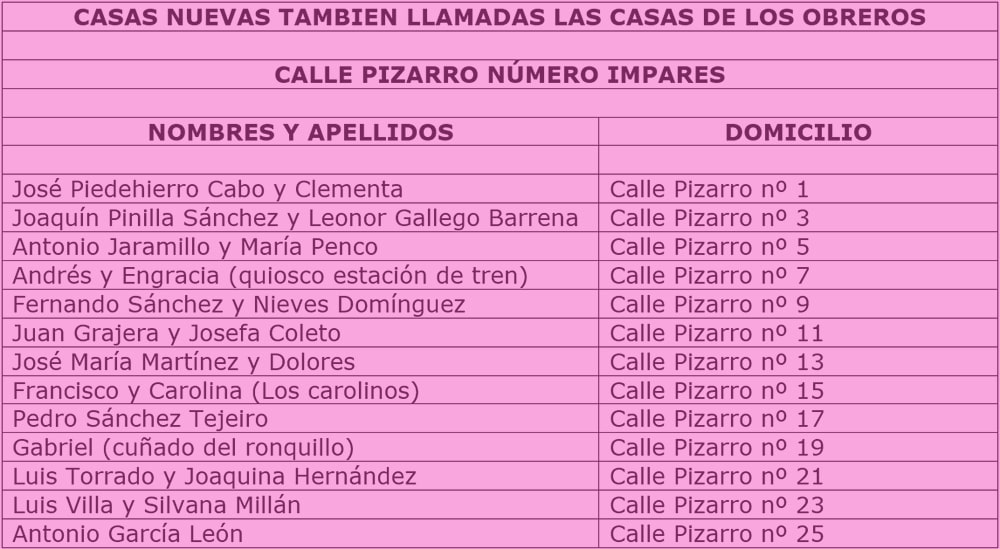 Matrimonios de la calle Pizarro del lado de los número impares