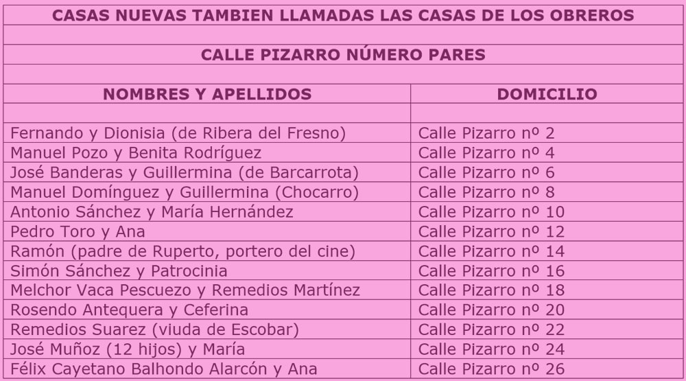 Matrimonios de la calle Pizarro del lado de los número pares