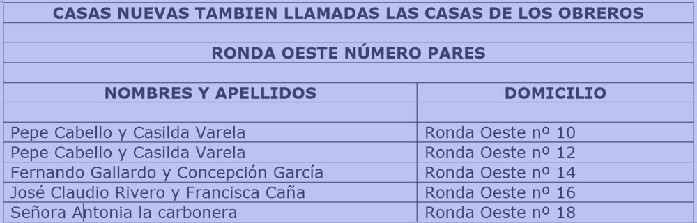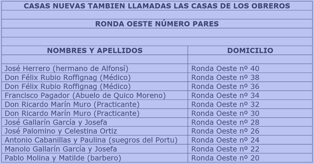 Para ello he necesitado la ayuda de varias personas, entre ellas, Pedro Sánchez González, José López San Juan, Encarna Claudio Caña y su hijo Antonio Sánchez Claudio y Ramón Masedo. A todas estas personas les doy las gracias por la ayuda prestada, pero estoy seguro que abra nombres y direcciones equivocadas, por lo que ruego encarecidamente, que todos los errores que detectéis, me los hagáis llegar, para yo poder rectificarlos.
