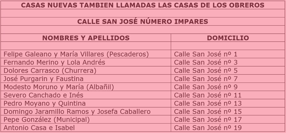 Matrimonios de la calle San José del lado de los número pares