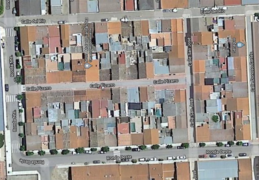 Plano de la situación de las casas de la calle Pizarro del lado de los números impares