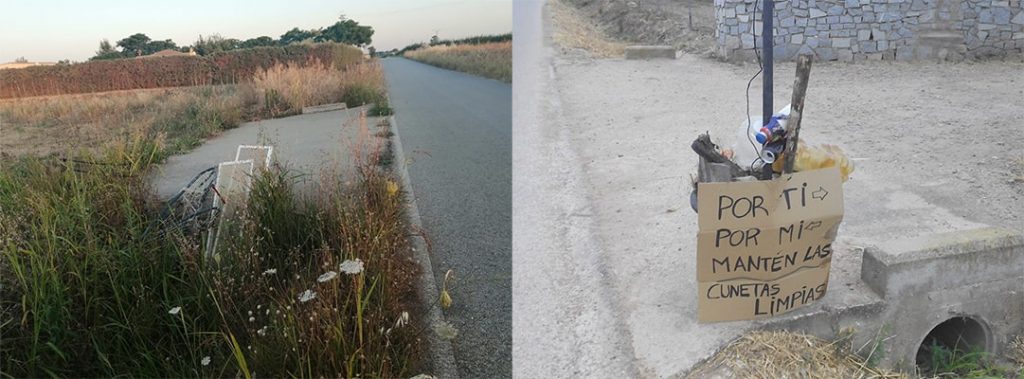 2).- La segunda está en la misma carretera, pero que contraste tan grande, con la otra foto, alguien se ha dedicado a recoger la basura, de la cuneta y ha puesto la basura con un cartel que dice lo siguiente: “POR TI, POR MI, MANTEN LAS CUNETAS LIMPIAS”.