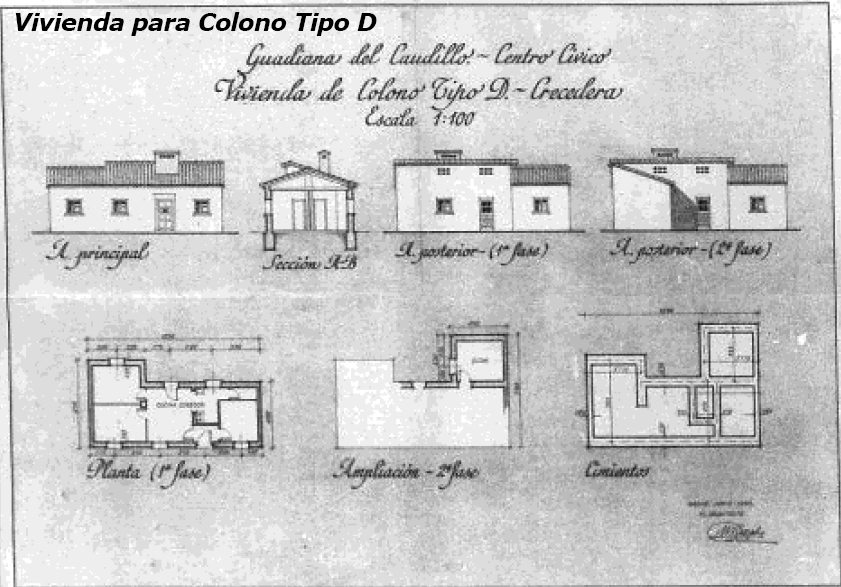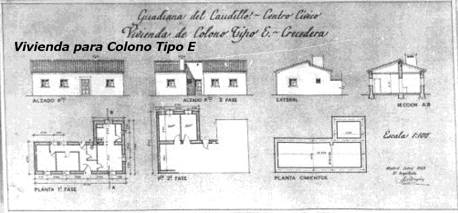 Vivienda para colono con 2 dormitorios (crecedera hasta 4), estar-comedor, cocina, aseo y despensa. Promotores originales: INC
