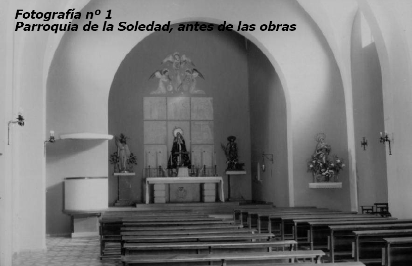 Cuando se hicieron las obras en nuestra parroquia, todo el retablo pétreo se mudó a la nueva capilla de la Virgen de la Soledad, y se le pusieron unas bonitas cortinas las cuales tapaban todo el retablo de piedra del gran escultor Eduardo Carretero Ferré y de esa forma estuvo tapado durante algunos años, pero hace no mucho tiempo se quitaron dichas cortinas para que se pudiera apreciar tan magnífica obra.
